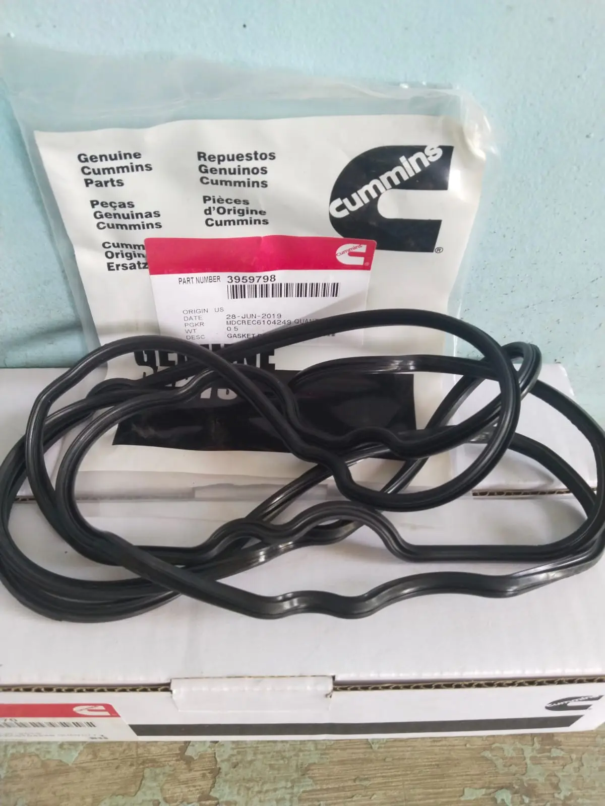 Gasket Asli Cummins dengan nomor part 3959798 adalah paking tutup klep (valve cover gasket atau rocker cover gasket) yang dirancang khusus untuk mesin Cummins seri ISB dan QSB 6.7L (umumnya untuk versi 24-valve). Fungsi utama dari gasket ini adalah untuk menciptakan sebuah segel yang kuat, fleksibel, dan kedap oli antara cylinder head dan penutup klep (valve cover).