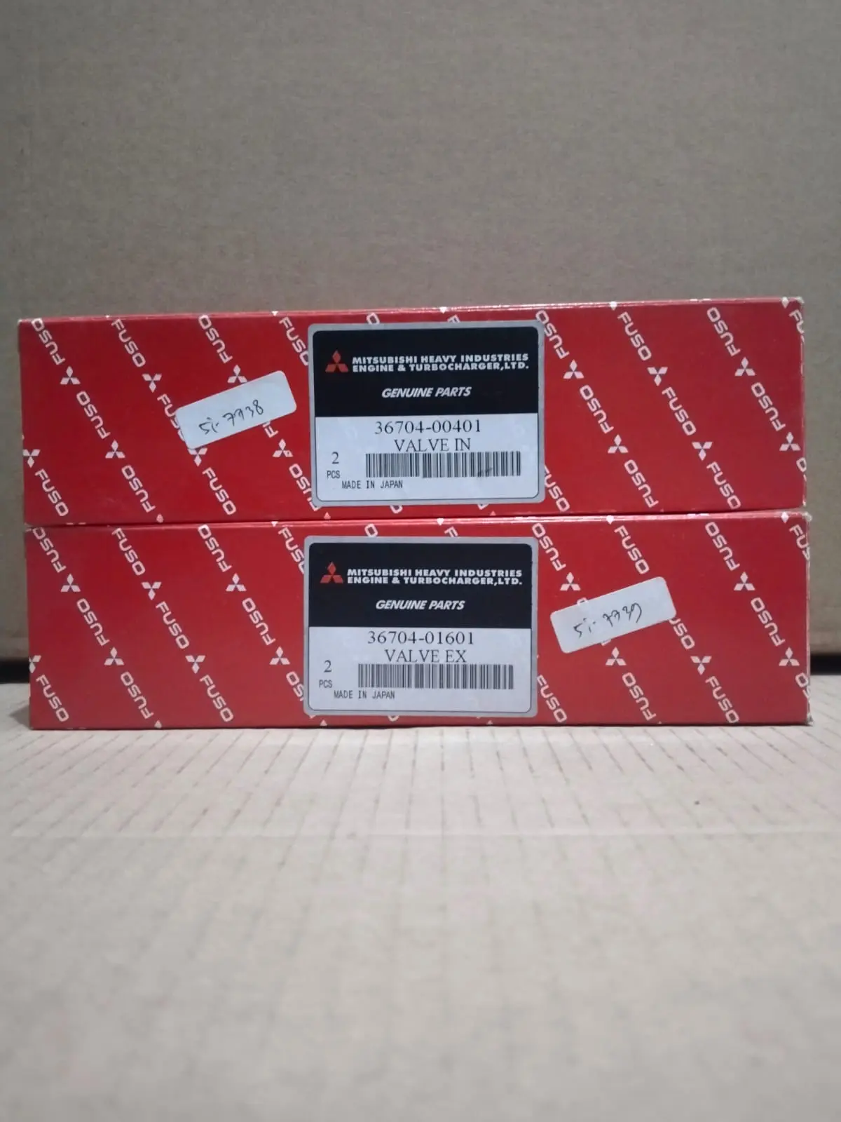 Kami menyediakan set katup atau klep (Valve) Asli Mitsubishi Fuso yang krusial untuk perbaikan presisi cylinder head mesin Anda. Terdiri dari Valve IN (Klep Masuk) P/N 36704-00401 dan Valve EX (Klep Buang) P/N 36704-01601, kedua komponen ini adalah suku cadang “Genuine Parts” yang diproduksi di Jepang dengan standar kualitas tertinggi.